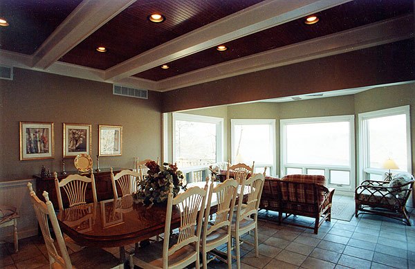 This contemporary styled 6-bedroom, 5½ bath home has a very "light and airy feel" with numerous windows and vaulted ceilings. The Galena Lake House is very spacious with a large living room, dining room, sunroom, and lower level rec. room. A separate 20 x 30 foot conference room accommodates corporate or group meetings. Some other amenities within the home include a ping pong table, separate music systems at upper and lower levels, wireless high-speed internet service, 55" flat screen TV/DVD, and 2 stone fireplaces. Bed configurations include 4 kings in separate bedrooms and 2 sets of double beds in two bedrooms.